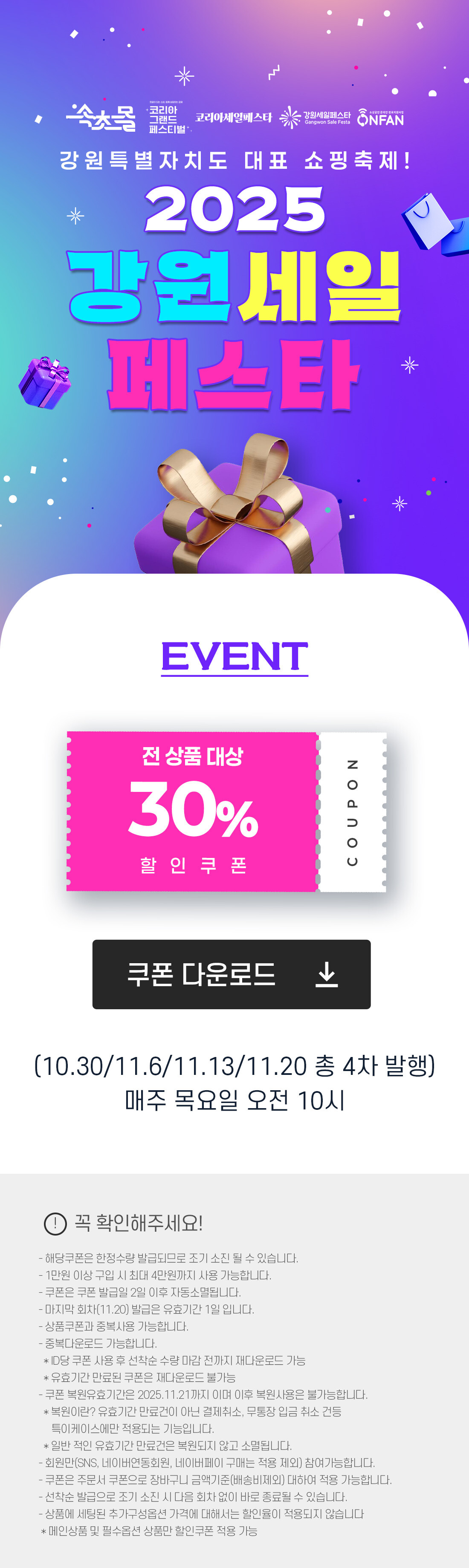 ※ 해당 쿠폰은 메인 상품 및 필수 옵션 상품에만 적용됩니다.
